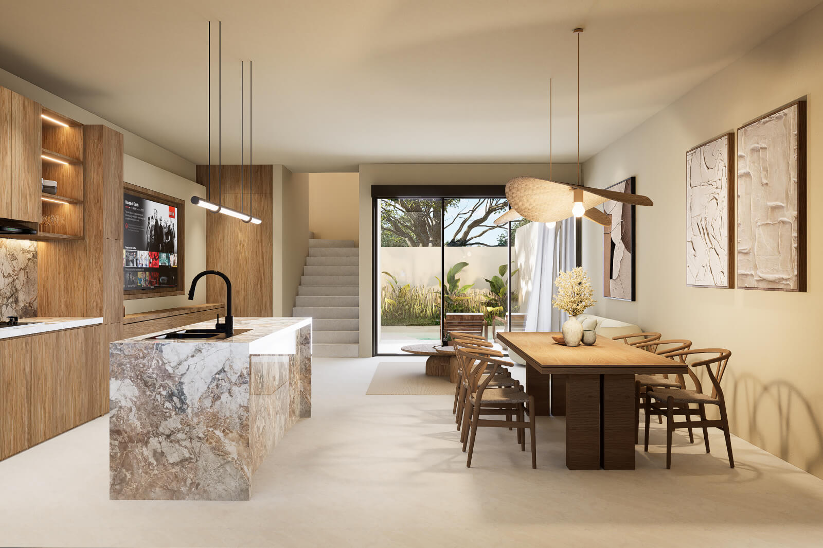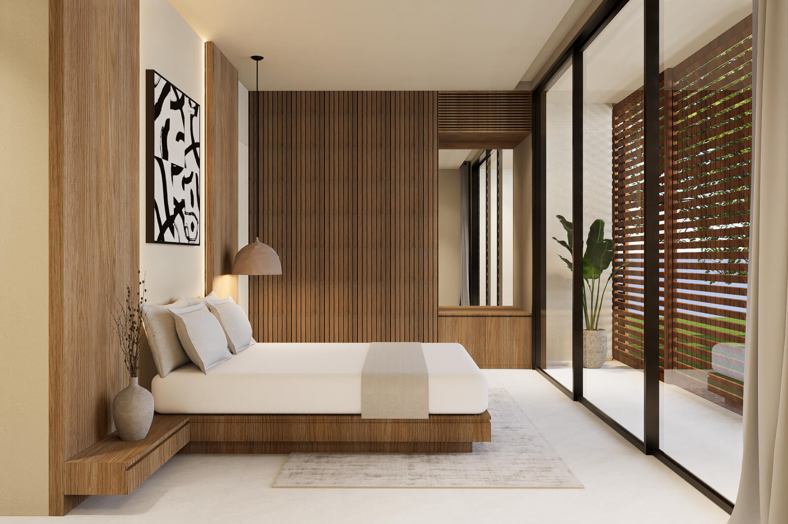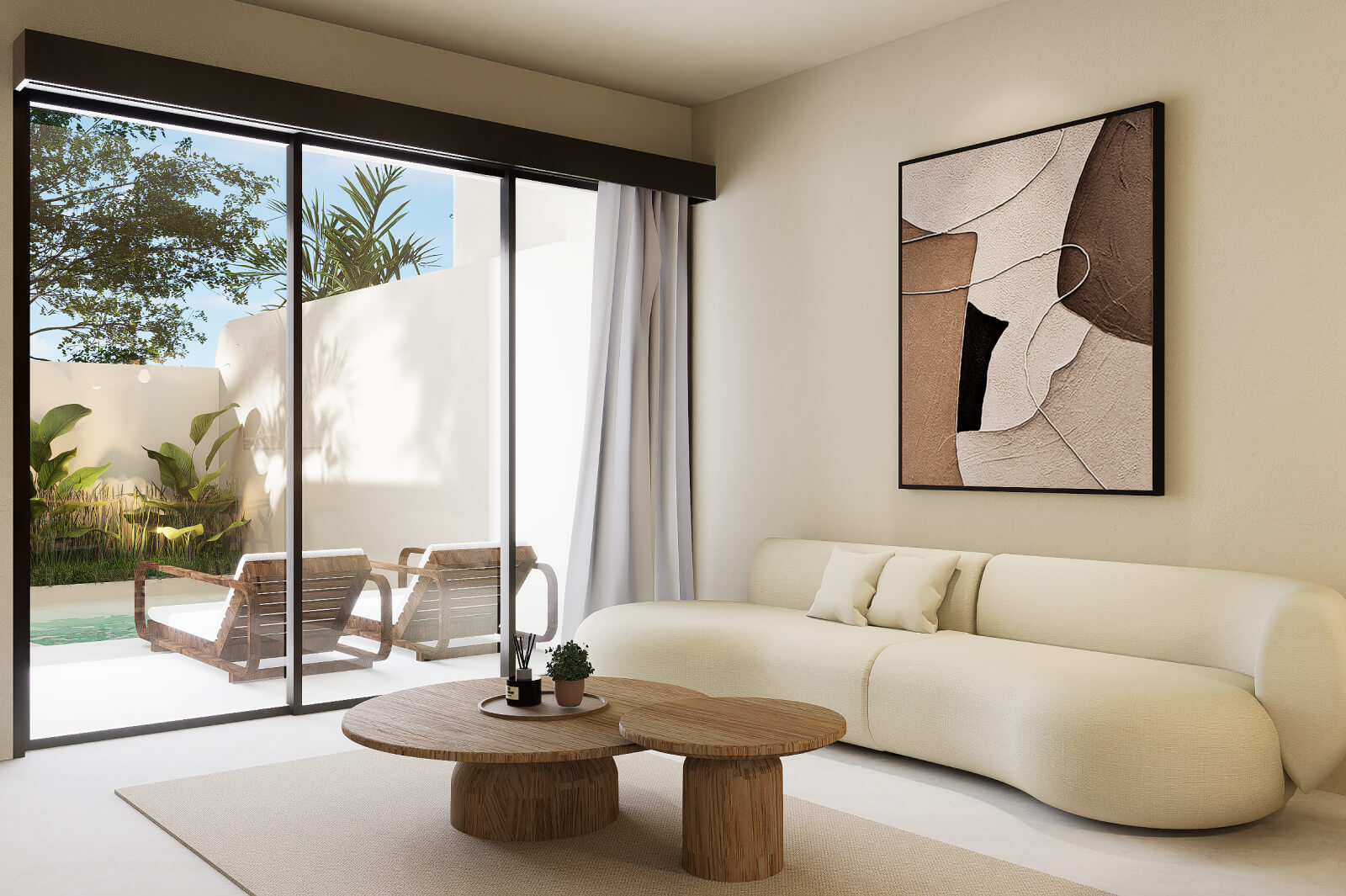 Situated in the Kedungu area, these two villa units are almost identical. Showcasing a Japandi design style, the villas are intended for sale with a broad range of potential customers in mind. While the Japanese - Scandinavi an style is quite common in the marketplace, we believe incorporating tropical design elements has enhanced the property's appeal, making it more enticing in terms of both aesthetics and comfort.